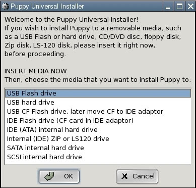 Bộ cài đặt của Puppy Linux có hỗ trợ mọi thứ từ các ổ USB để giao tiếp với flash card